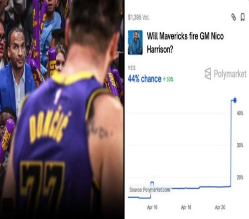 在见面会中哈里森谈到了交易东契奇的原因等诸多话题,据PolymarketSport统计,在今天的新闻发布会后,哈里森被解雇的概率飙升至了44%。