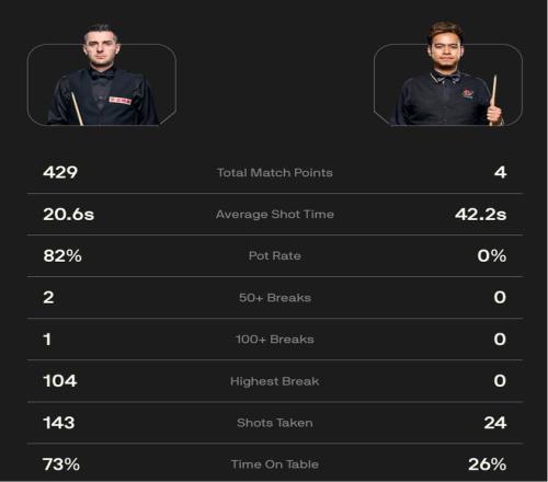 面对“莱斯特小丑”,桑坎姆在总共4局比赛中,打了24杆,一球未进。唯一的4分还是塞尔比犯规被罚才得到的。赛后数据表上,罕见看到桑坎姆在击球准确率这一栏挂零。